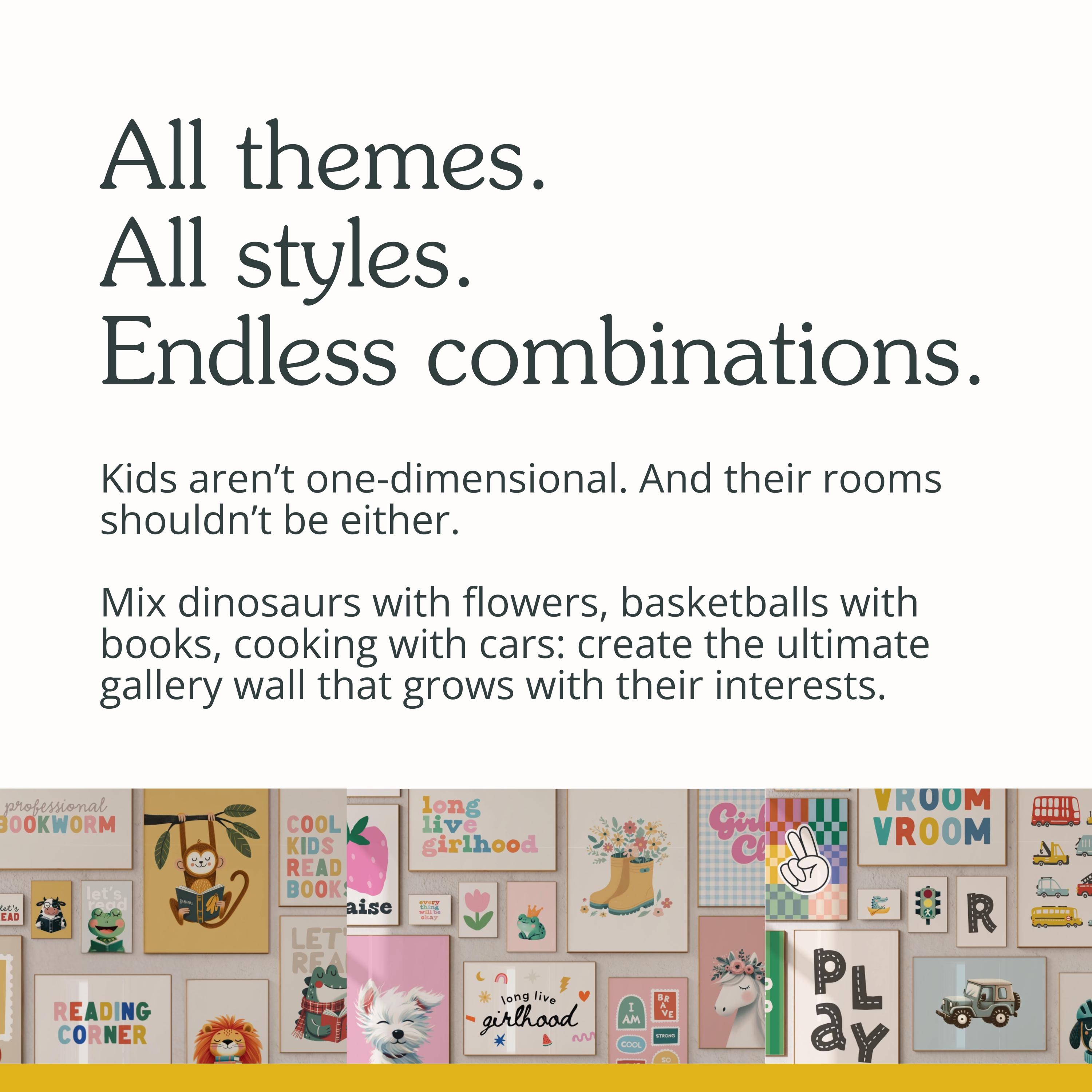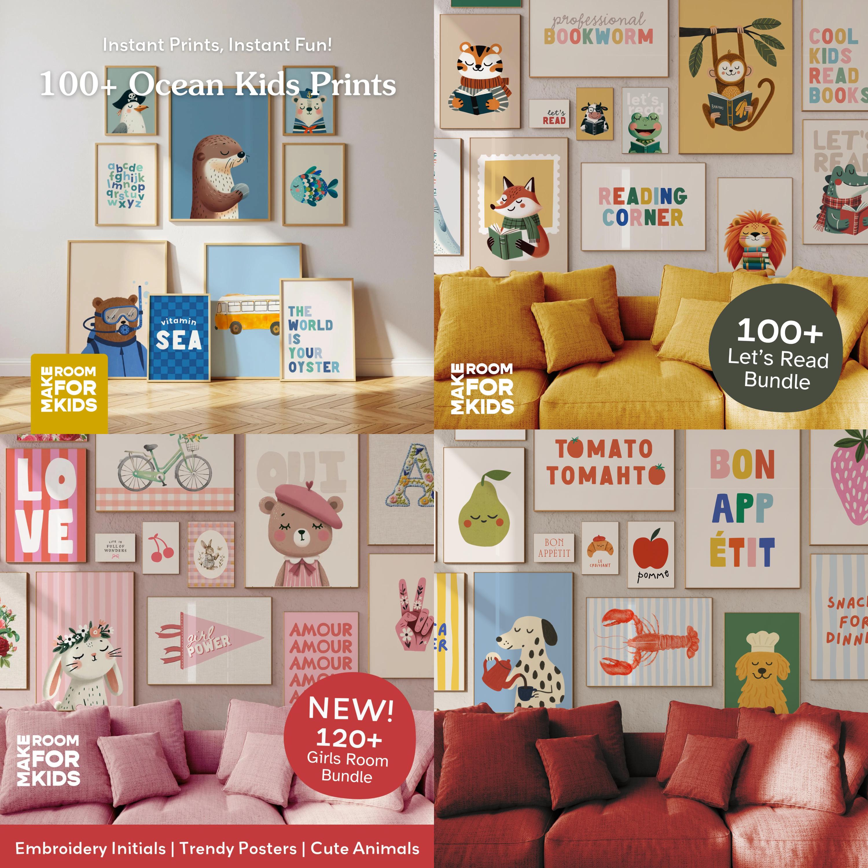 Bring joy, color, and personality into any child’s space with this mega printable wall art bundle featuring 900+ beautiful prints in a wide variety of playful, cozy, and educational themes.